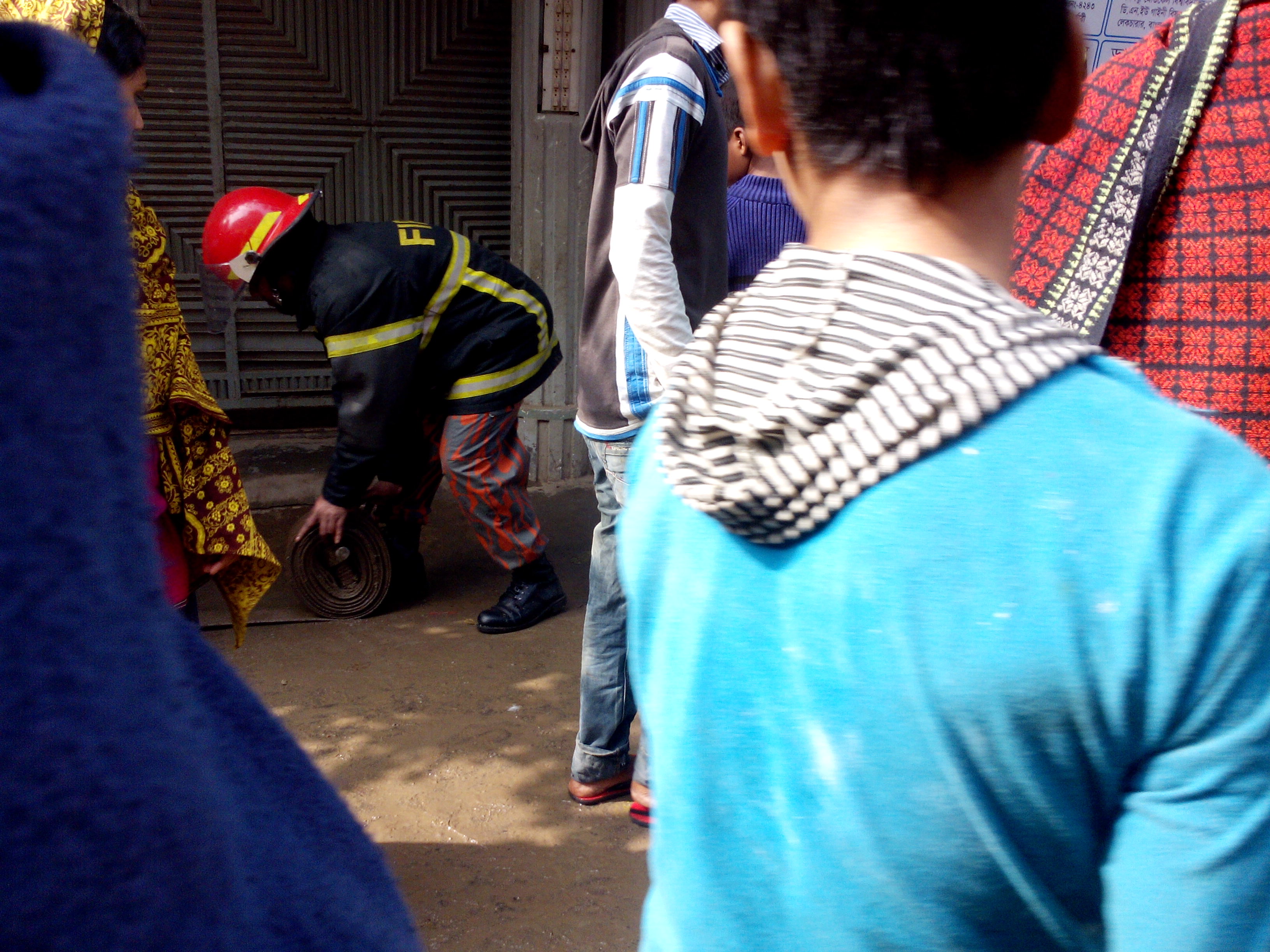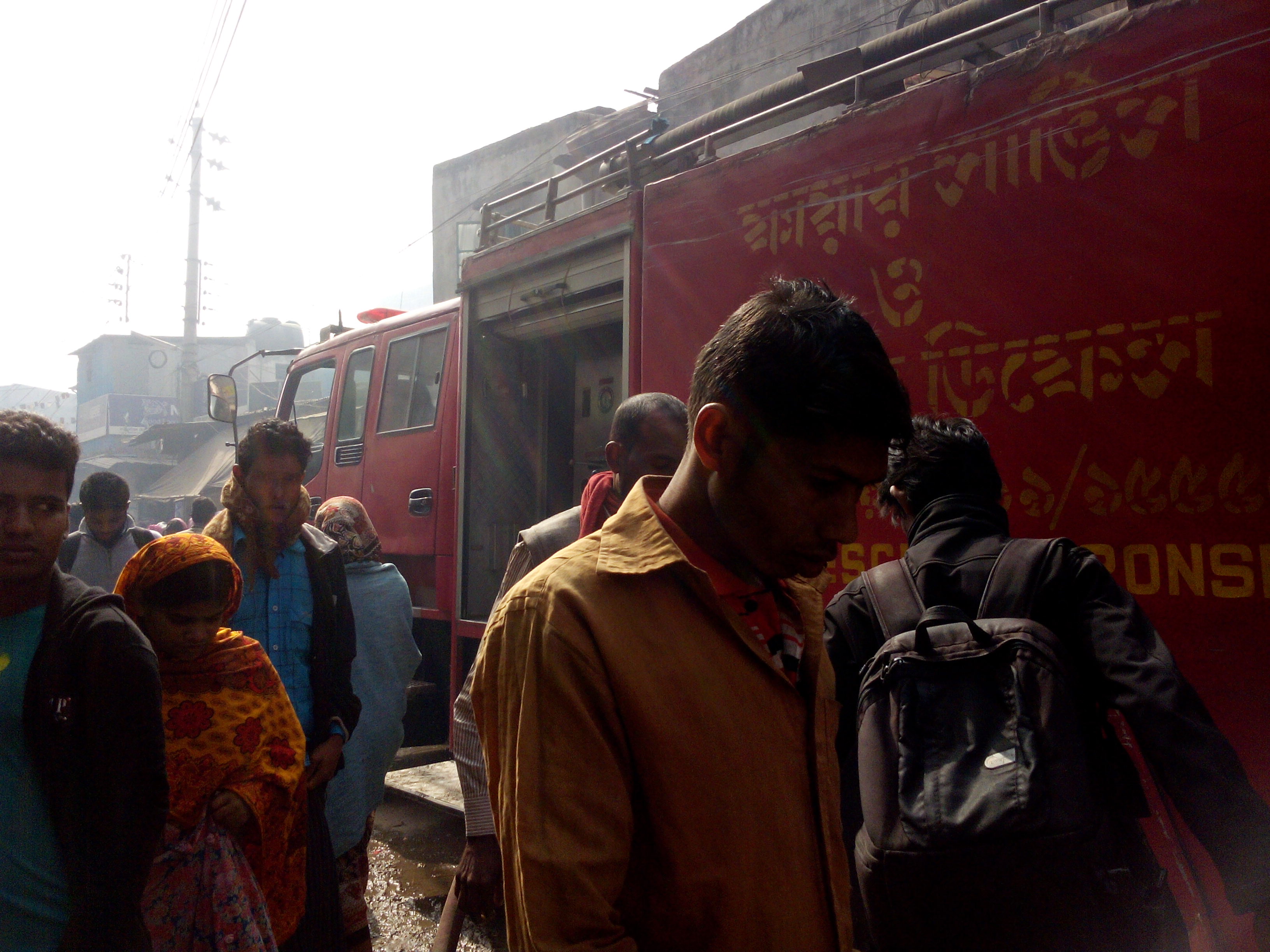 বটতলায় নাইমা দেখি, গড। ফায়ার লিডার। আর ফায়ার সার্ভিসের গাড়ি।